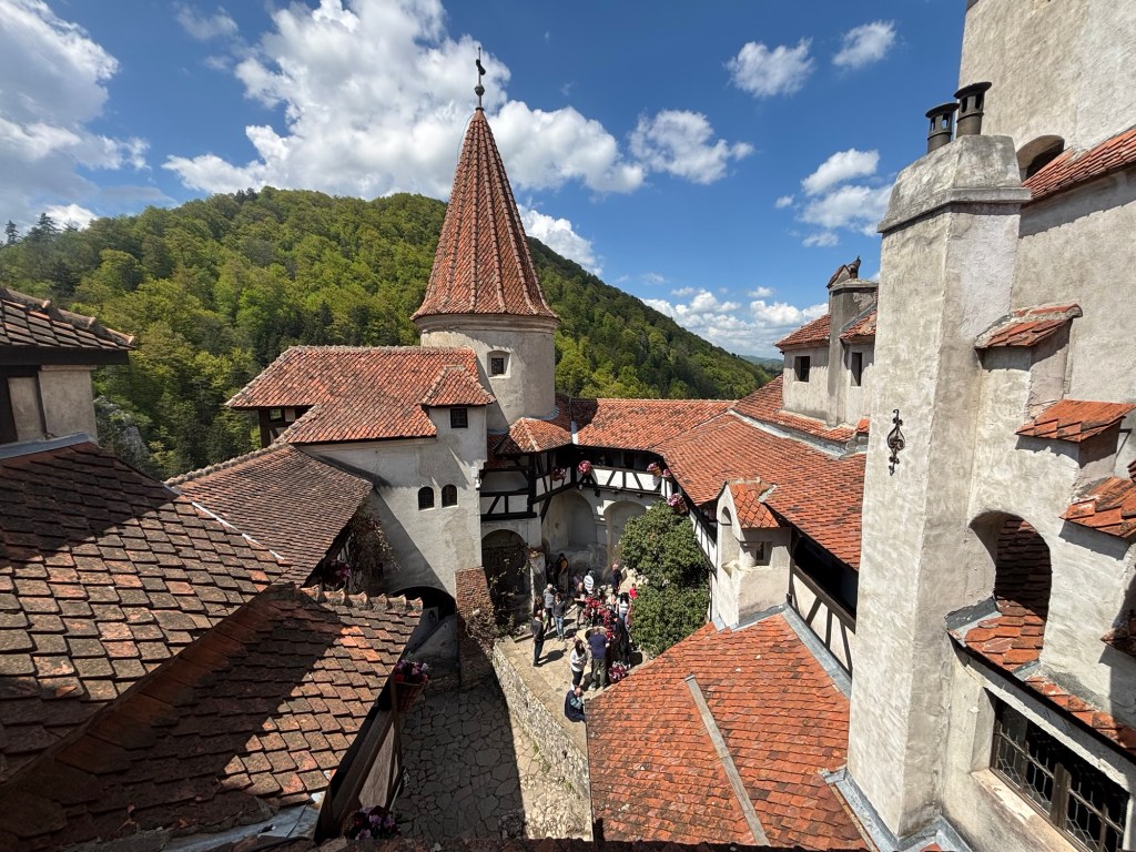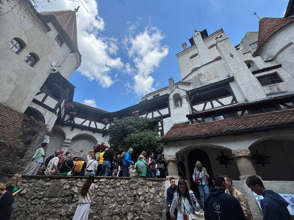 Our next stop was Bran Castle, often linked to Bram Stoker’s Dracula. The castle sits dramatically on a rocky cliff and matches the novel’s descriptions. But the truth is – Stoker never visited Transylvania, and Vlad the Impaler (a.k.a. Vlad III Dracula), while associated with the legend, never ruled Bran Castle—though some claim he was imprisoned there briefly.